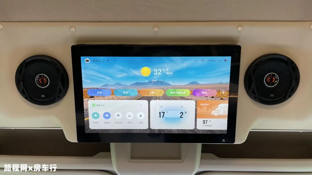房车管家+智能大屏搭配驾驶舱4个扬声器(低音+高音)、生活舱4个JBL扬声器使用,可为房车生活带来全方位的智能视听娱乐体验;