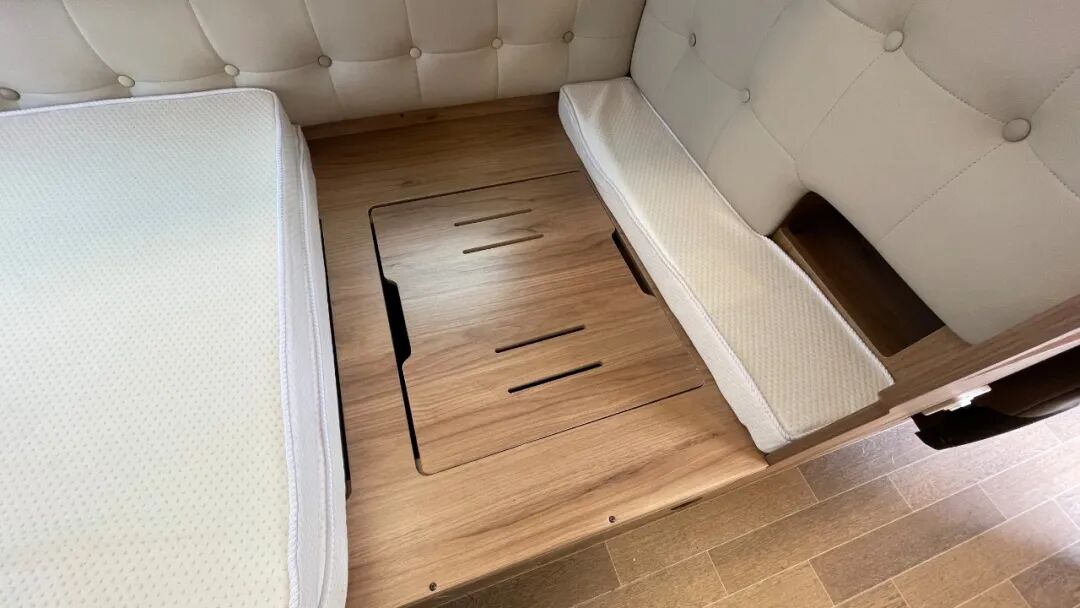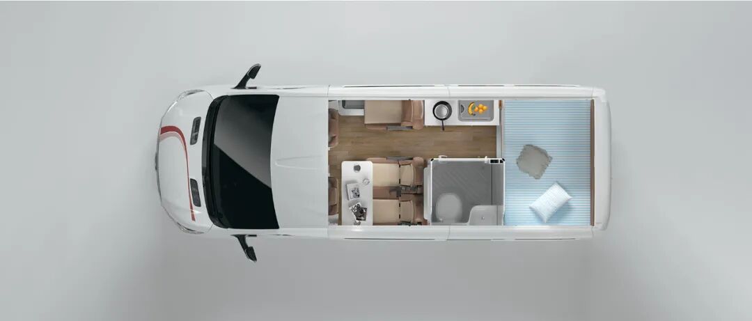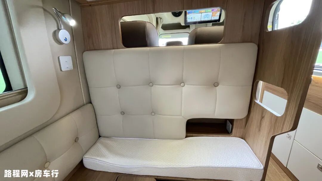 内饰方面,有横床版与纵床上下铺版可供选择,两个版本除座椅数量、冰箱容积、内饰布局有所变动以外,其它方面基本保持一致;本次小编为大家展示的是纵床上下铺布局。