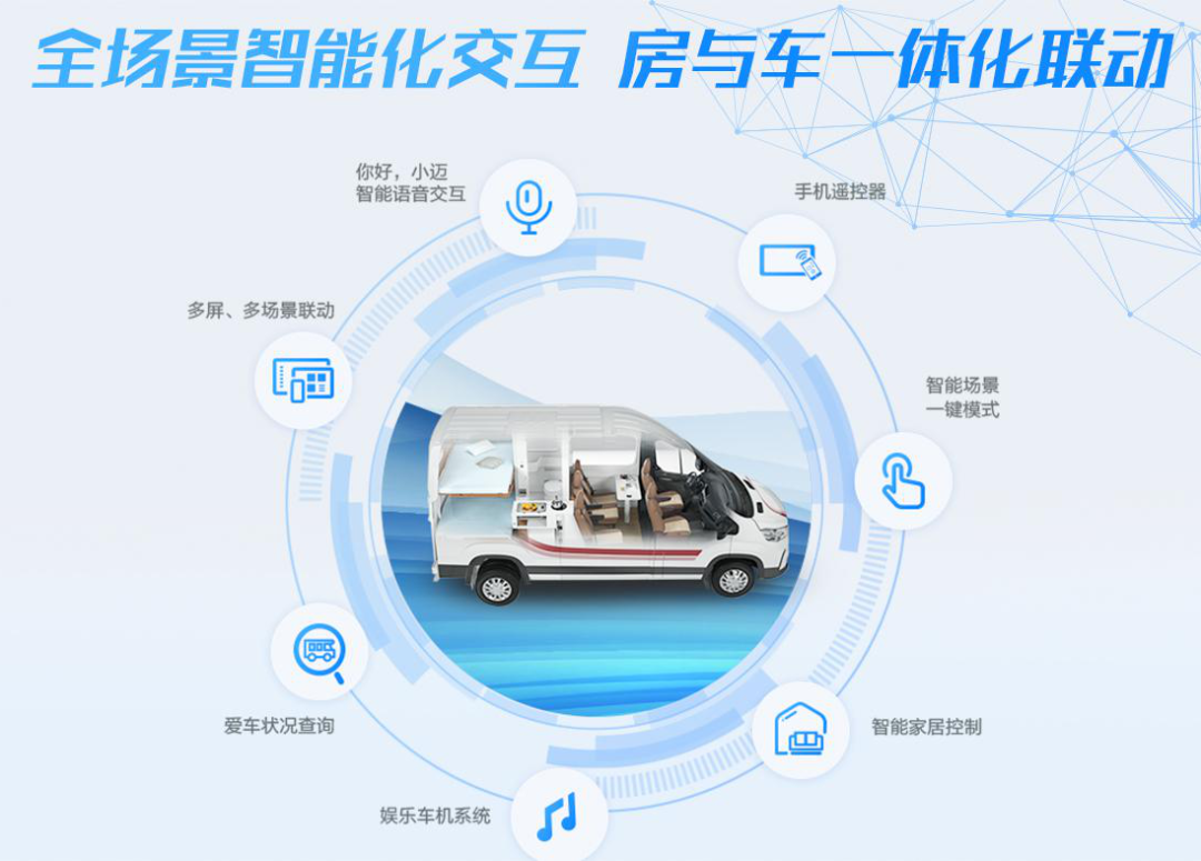 新车同样搭载了蜘蛛智联车联网-全新腾讯TAI 3.0系统,包含全新蜘蛛智联系统(远程控制:解锁、上锁驾驶门和房车中门,远程控制空调;车况查看:电池电量、清水箱、灰水箱水量、里程数、胎压、油量等)、腾讯TAI3.0车机系统、一键救援等。