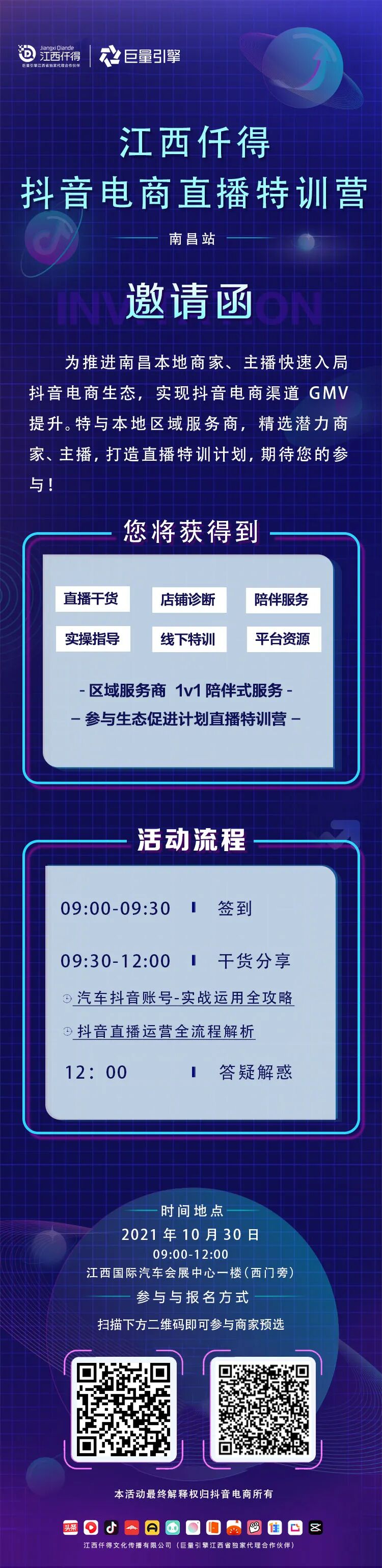 本次培训会线下举办,对抖音电商运营感兴趣的汽车、房车企业都可参加,想要参加的嘉宾通过扫描下方二维码报名。(ps:为确保培训会高质量开展,参加培训会的嘉宾需要预先缴纳199元押金,现场签到后返还。)