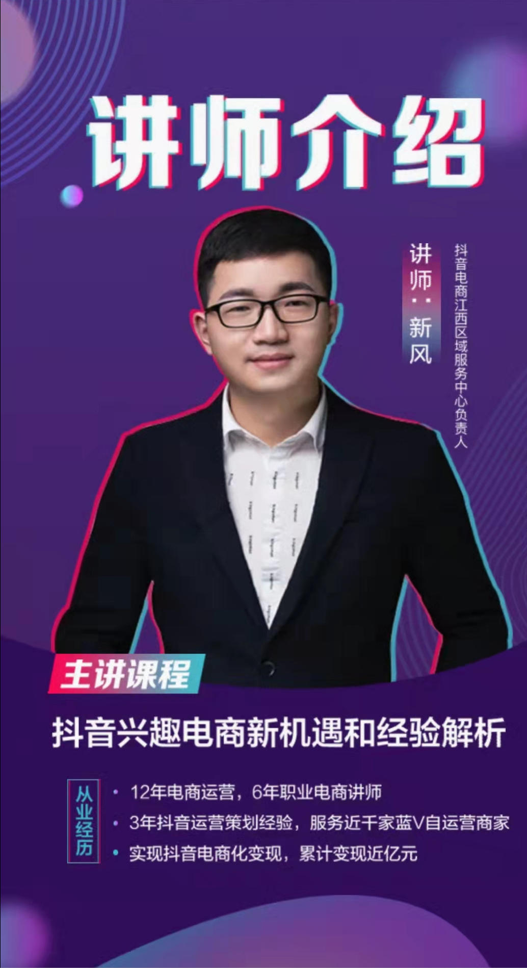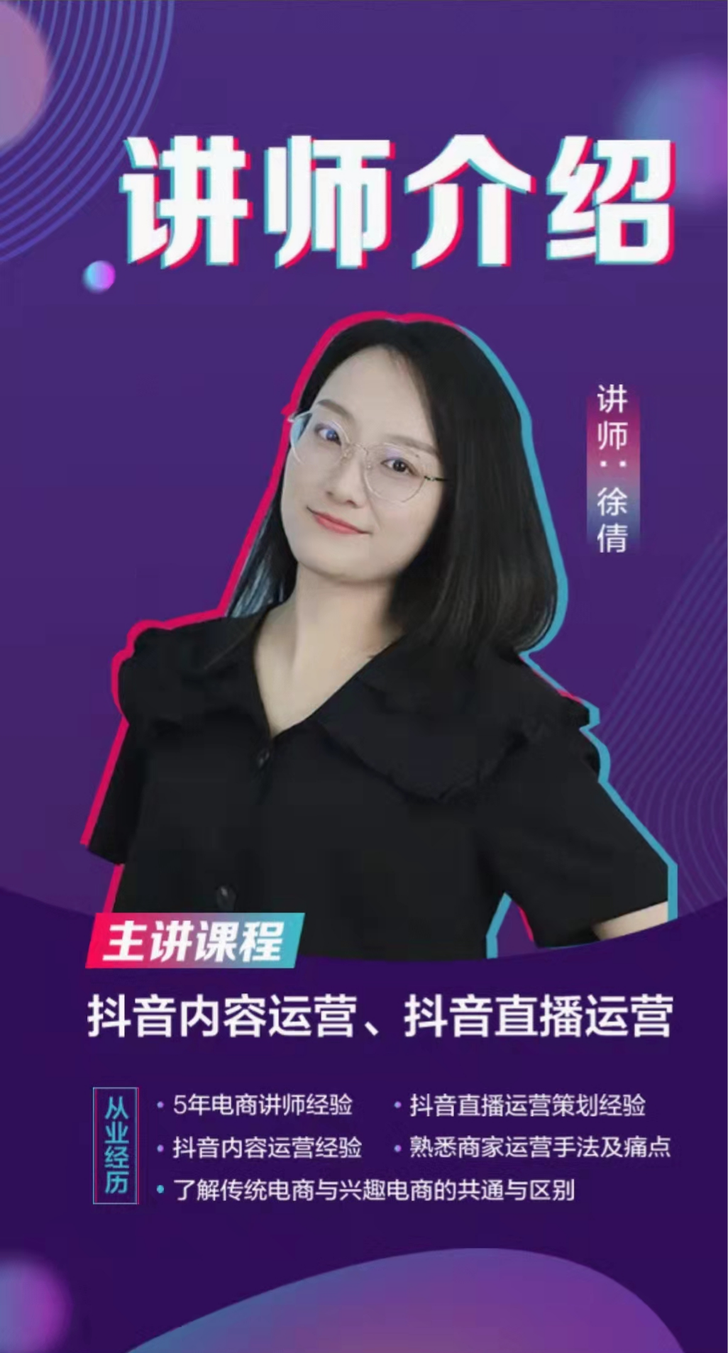 ·五年电商讲师经验 ·抖音直播运营策划经验