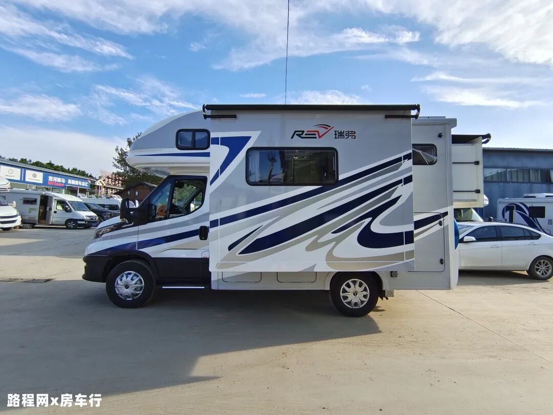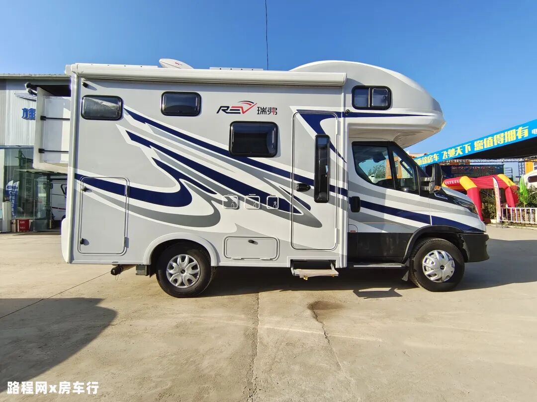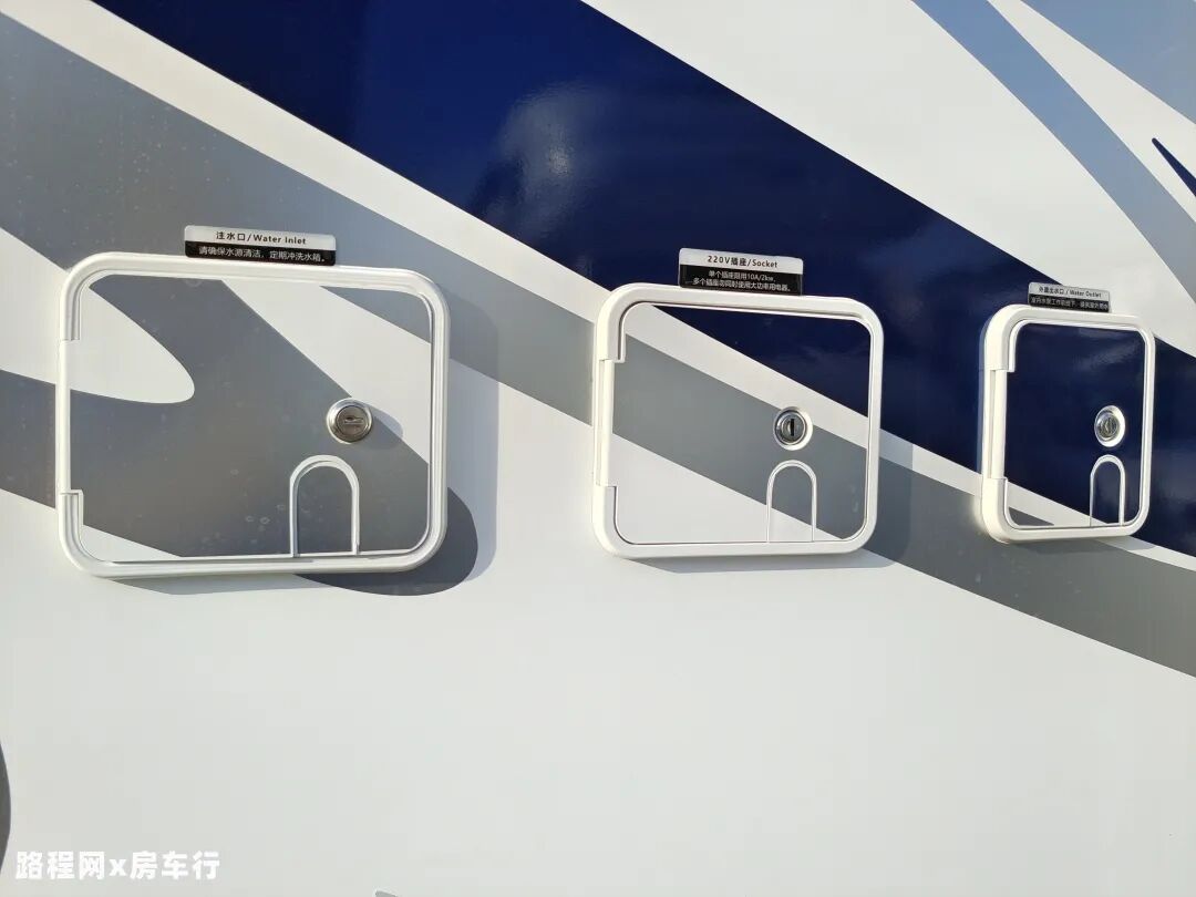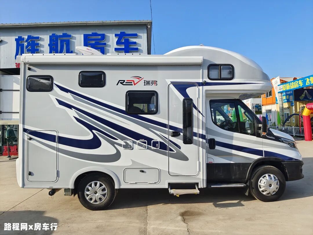 车身外部配置了进口风感自动收回电动遮阳棚、电动驻车平衡器、REV定制正副驾驶室防滑踏步、进口房车专用乘客门、贯通式超大行李箱、车外抽拉式燃油灶、注水口、充电口等设施,满足了储物、用电、用水等多方面需求,极大的方便了户外生活。