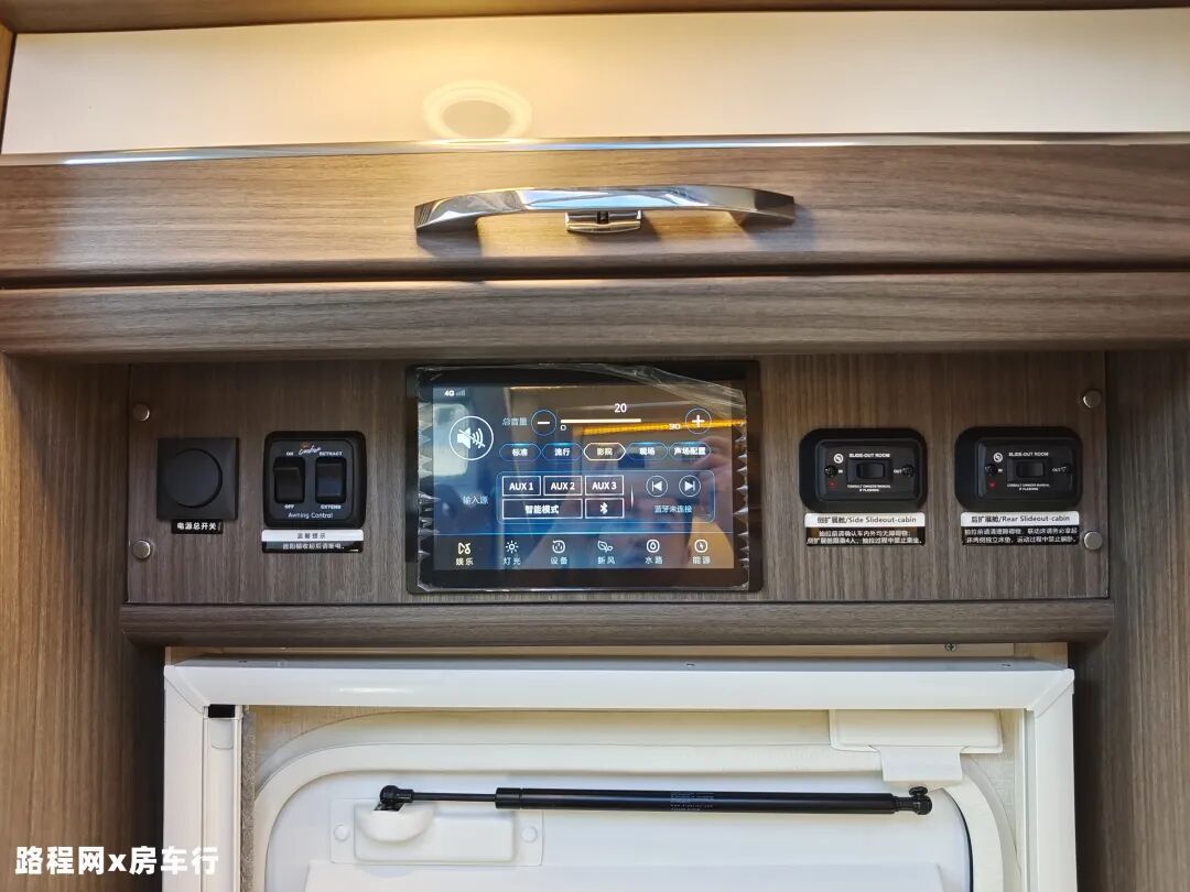 乘车门上方设有10寸触摸式控制器,实时显示车内灯光、水电系统情况,并通过控制器控制。