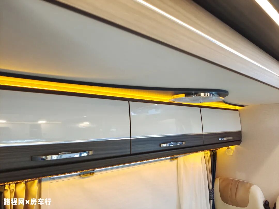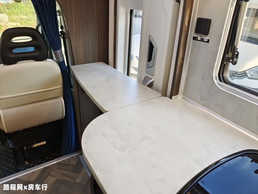 房车内部采用C型房车经典布局,从前至后依次设置额头休息区、会客区、厨房区、卫浴区、尾部休息区,功能完善,空间充足,保障了户外旅居的舒适度。