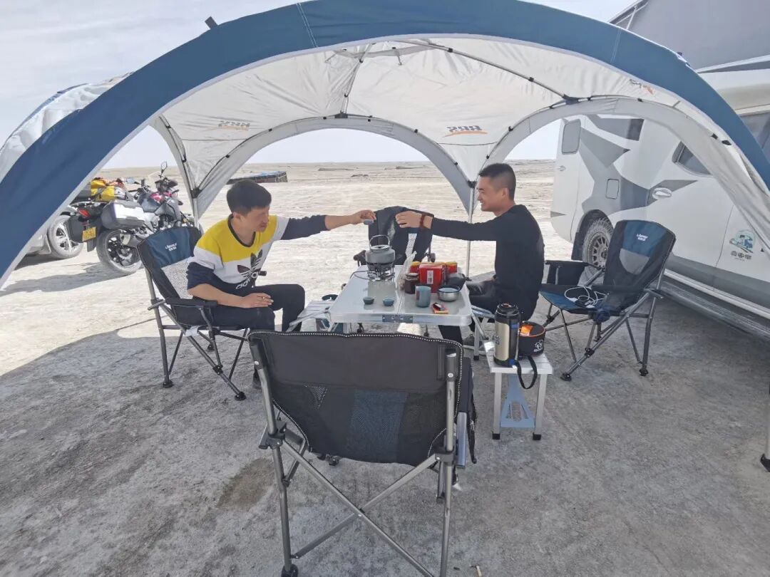 现场订车,购车定金到账(车辆全款的30%),赠送户外茶具一套、折叠桌一套、烧烤架一个、霞客乐订制保温杯一个。