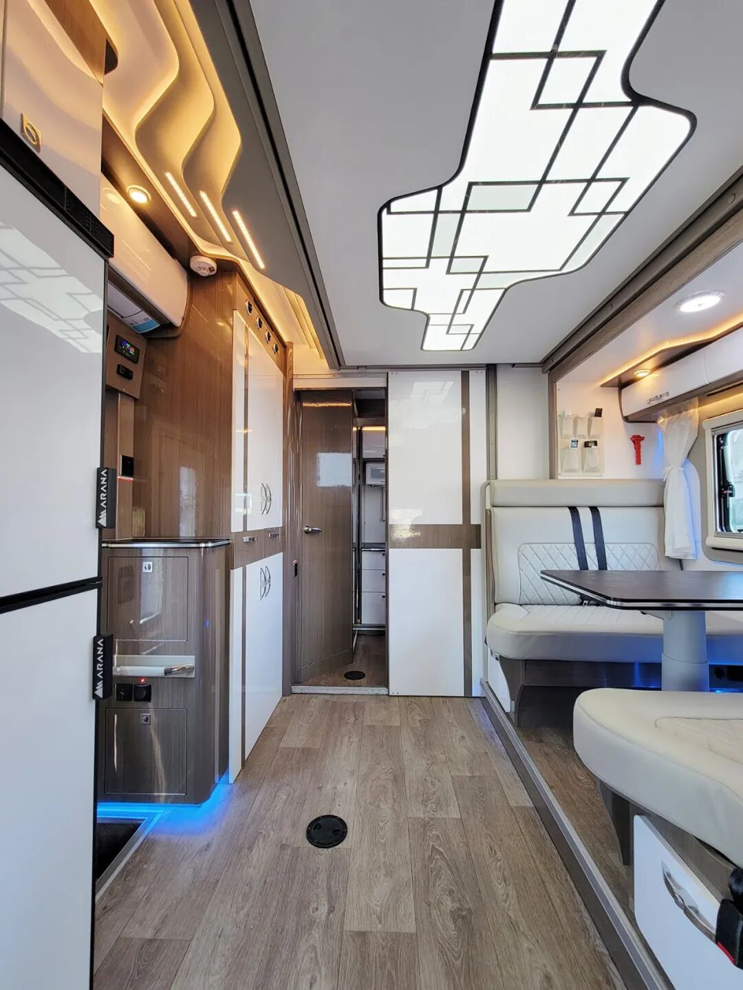 霍夫勒骑士系列房车,整车采用全铝车身,优质航空铝材料,五明治式复合车身结构,不但加强了整车的保温保冷性,还具备很强的抗撞击刚性、好修复的特点。