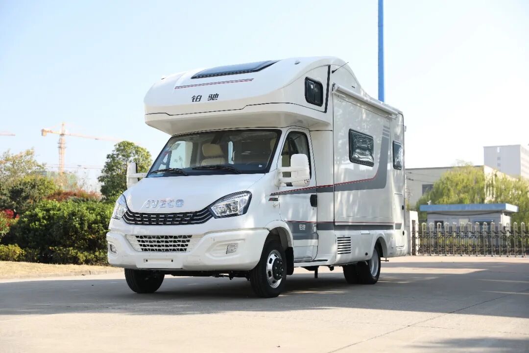 铂驰旅行家双拓展房车基于国产依维柯自动挡底盘打造,车身尺寸为5990x2510x3190(mm),搭载3.0T柴油涡轮增压发动机,最大功率170马力,峰值扭矩400牛米;传动系统匹配德国采埃孚的8速AT手自一体变速箱。安全配置方面搭载有9.0 ESP车身电子稳定系统,还配备了定速巡航、独立胎压监测、行车空调及双150A发电机。