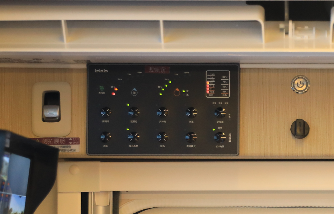 该车标配800AH锂电池,800W太阳能板,3000W充逆变一体机,用电无忧。水路方面配备200L净水箱,80L灰水箱;马桶采用塞特福德抽拉马桶18L。