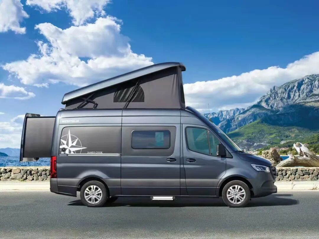 相比国内房车企业,海外房车品牌在空间设计、布局方面更为大胆、激进。就拿B型房车来说,国内的B型房车大多采用尾部床的布局,少数带有升顶结构,带有尾部拓展机构的更是鲜有耳闻,而国外的Westfalia公司展示了同时带有升顶结构、拓展机构的房车——James Cook ,下面我们一起来看看这款房车。
