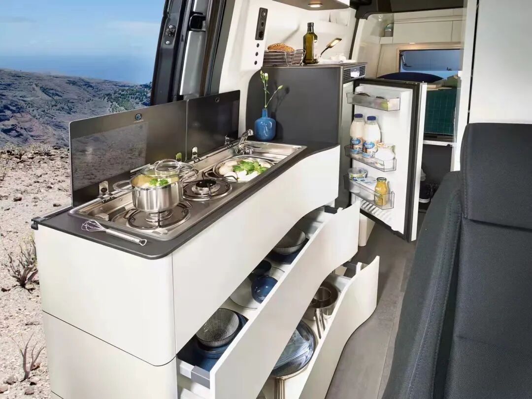 水电方面,James Cook配备了95AH电池、100L净水箱、78L灰水箱、太阳能板接口、Westfalia中央电源控制系统等,满足旅行用水用电需求。追求旅居生活品质的车友,还可选装高级选装包,选装外接淋浴(带加热功能)、可拆卸外用桌板、高级后排座椅等设备。