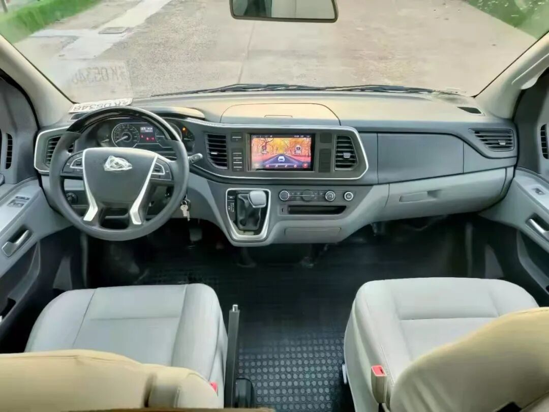 新款驾驶舱较之以往更加人性化,整体设计更偏向于乘用车;主副驾驶座椅采用黑色皮革与灰布料混搭软包覆,乘坐舒适度进一步得到改善;行车方面配置多功能方向盘、中控显示屏、导航+倒车影像等辅助驾驶;
