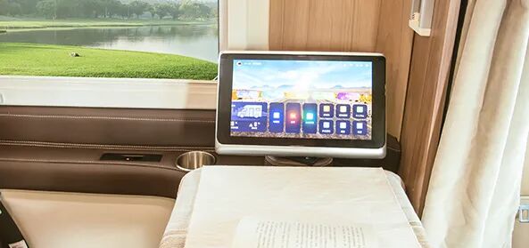驾驶舱上方设有一台22吋网络电视,搭配生活区4个JBL扬声器,可为用户带来全方位的视听娱乐享受。