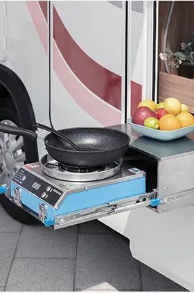 户外厨房可选卡式炉或柴油炉,搭配外部取水口、调料架、外置置物板等,户外烹饪轻松满足,尽情享受野炊乐趣,有效避免车内做饭油烟过重的问题。