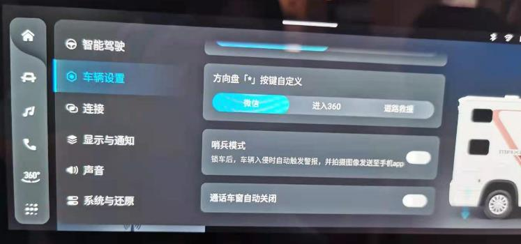全方位行驻车一体安防系统包含锁车哨兵模式、驻车安防监控、行车记录仪等,帮助用户随时掌控车辆周围环境,为用户房车出行提供良好的安全保障。