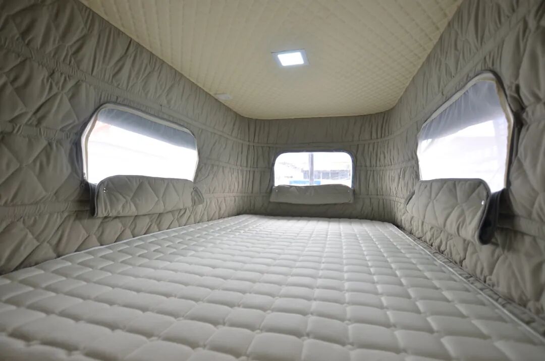 区别于齐星新全顺家族其他车型,齐星新全顺低顶房车采用齐星升顶家族中同步升顶技术,做到了平直升顶,凭借专利升降顶结构技术,赋予房车更多行驶场景,良好耐候性(防水防晒)+三层特殊保暖材质+先进制造工艺,一键升顶有效减少风阻,降低重心,增强行车稳定性和安全性、一触即来的驻车露营体验,充分拓展车内空间。