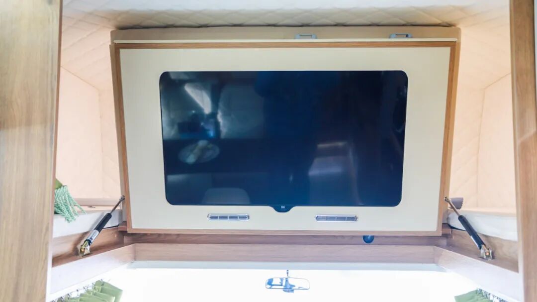 驾驶舱上方设有32寸智能电视,提升旅行时的观影娱乐体验;