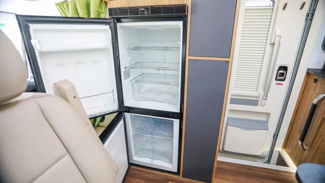 下发搭载房车专用148L双开门冰箱;