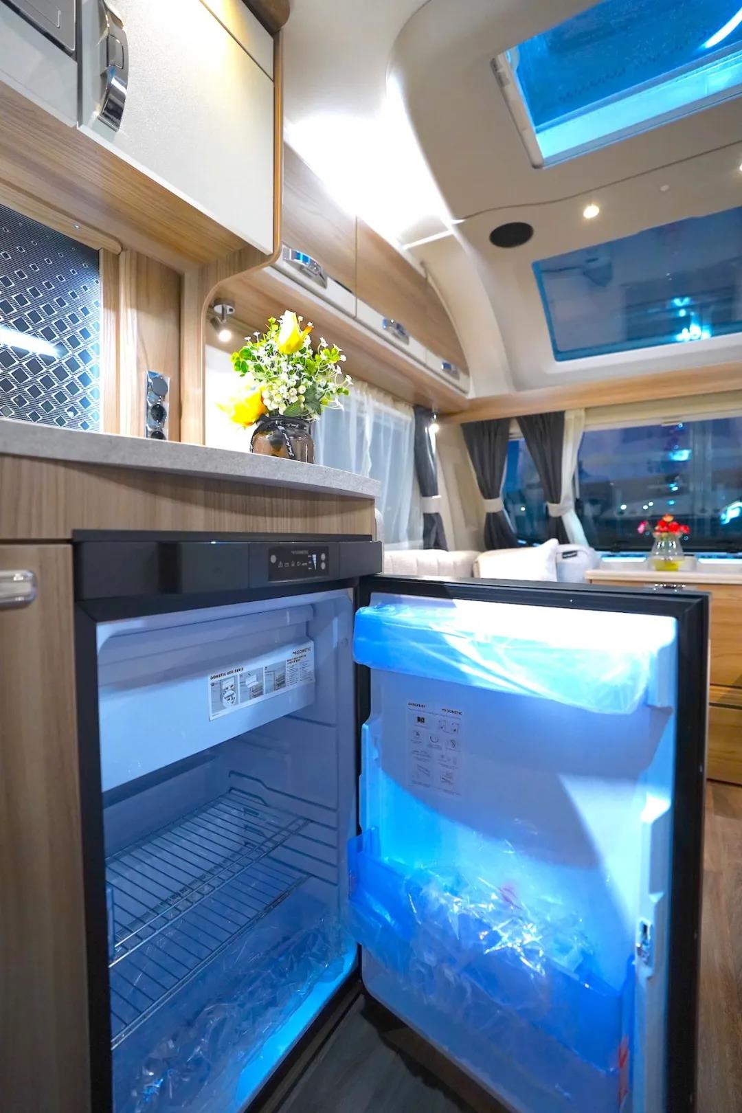 橱柜下方还内嵌了一台115L多美达冰箱,可存放蔬菜、水果及酒水饮料。