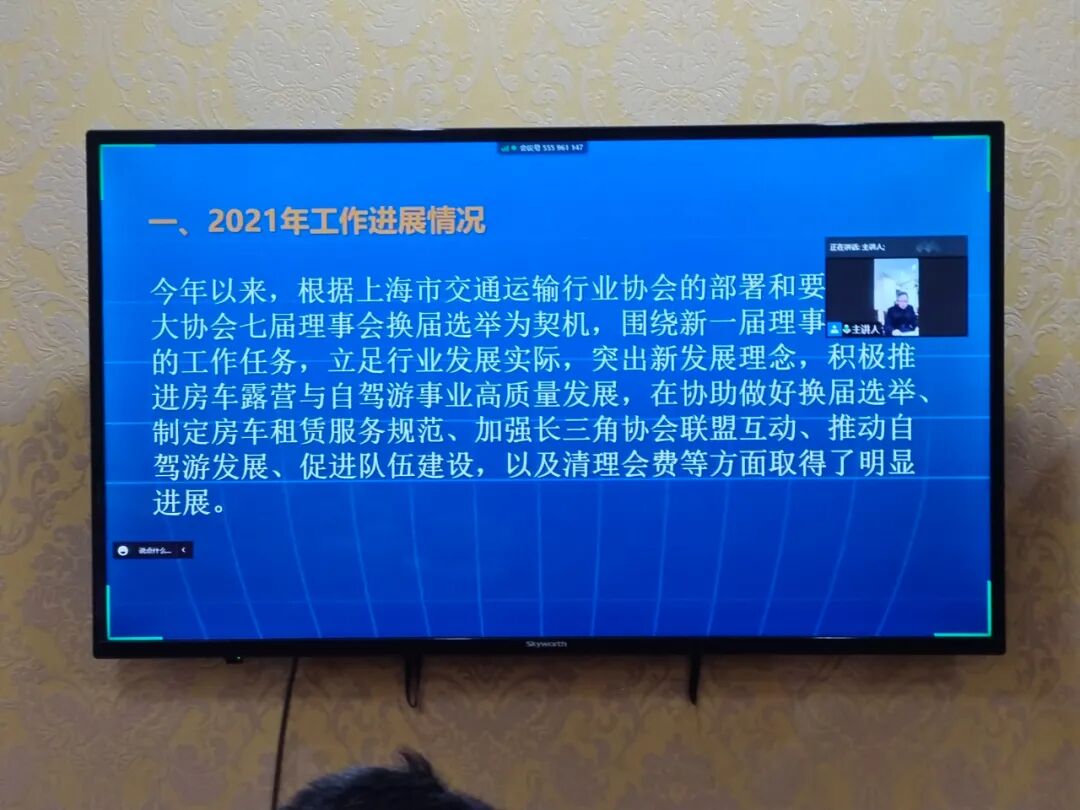 大会第二项议程,上海市交通运输行业协会房车露营与自驾车分会副秘书长李宏廷向各委员单位通报了上海市交通运输行业协会房车露营与自驾车分会2021年度工作总结,重点方面: