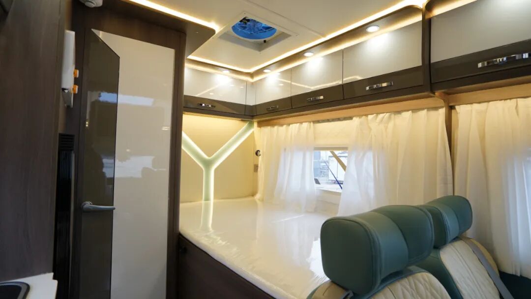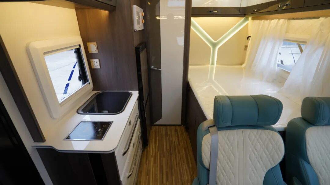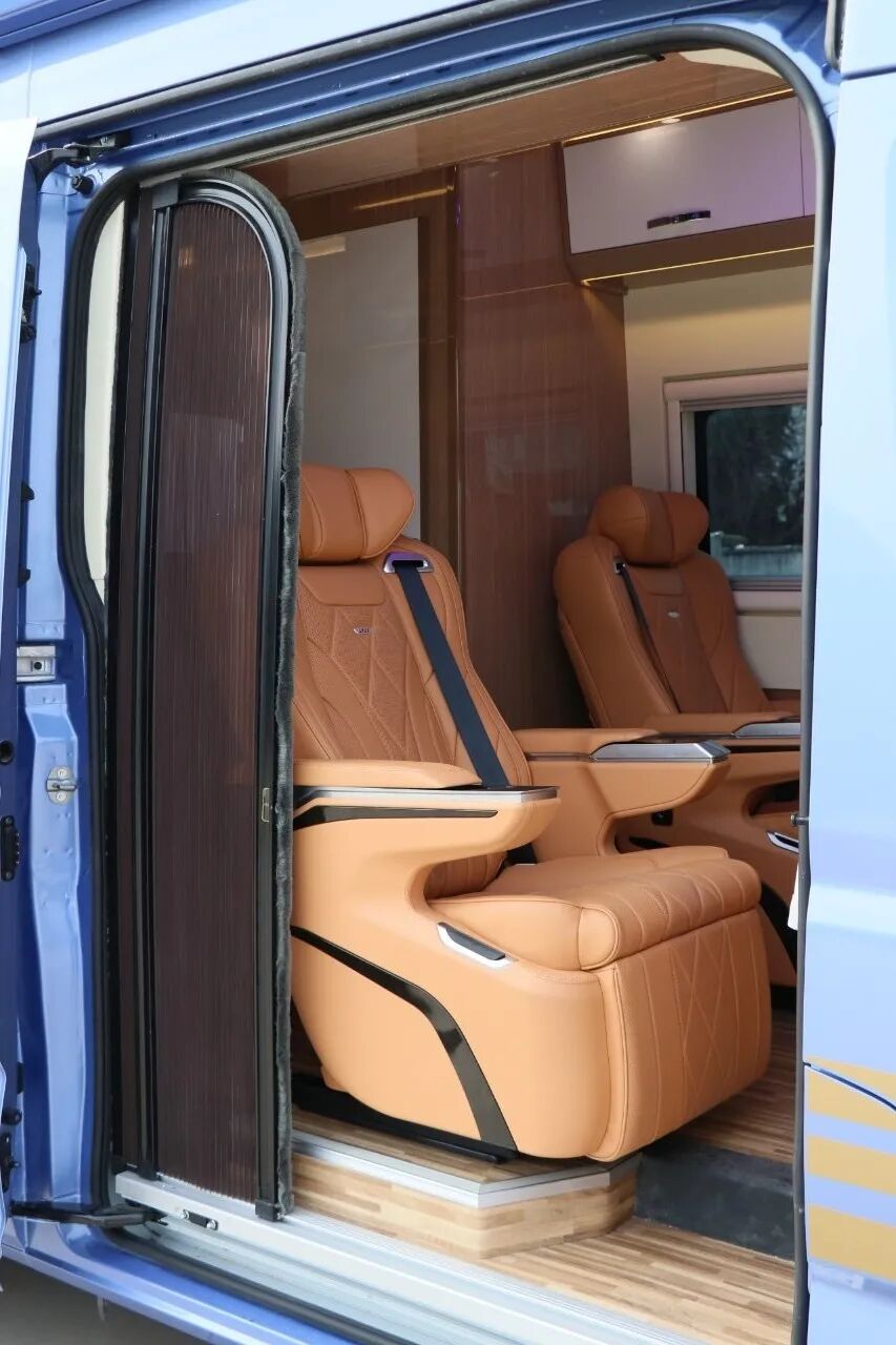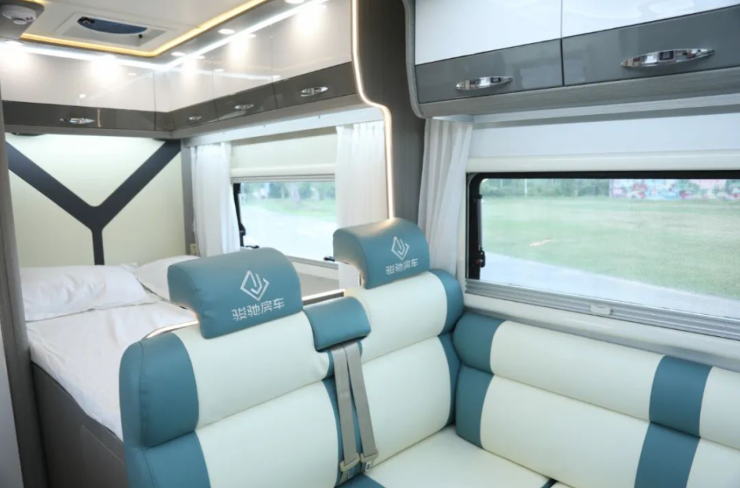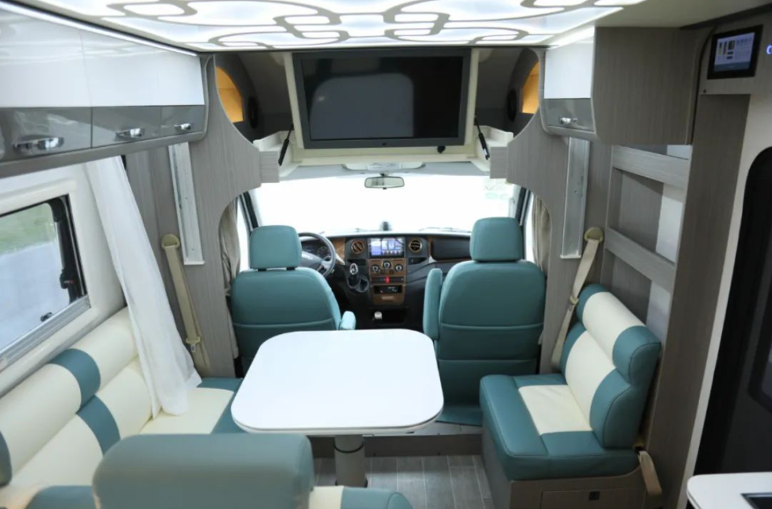 · L型沙发卡座+可升降餐桌+单人沙发+可旋转的正副驾驶;
