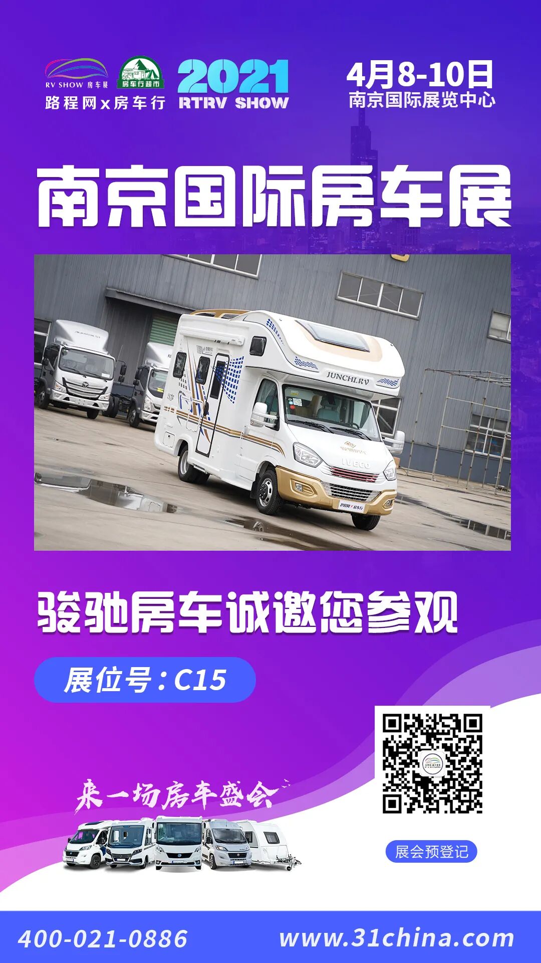 2021南京国际房车露营与自驾游博览会将于4月8-10日在南京国际博览中心开展。届时,骏驰房车将携旗下全系新车亮相展会现场,精彩即将开启!
