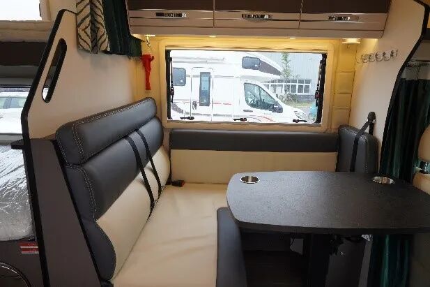 ● 车内采用L型沙发+后置子母床布局,后纵置子母床的布局也是用户颇为喜欢的布局之一,内饰设计接近欧式风格,内部家具饰面的纹路和白色的面板搭配干净、整洁;