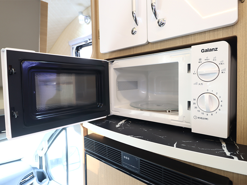 中层内嵌了一台格兰仕微波炉,可以快速加热食物。
