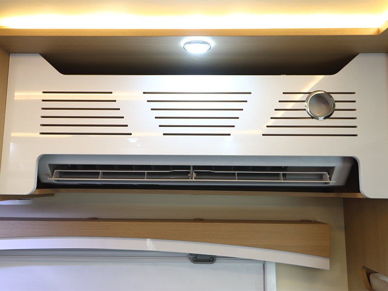 卡座上方内嵌了一台家用格力空调,用于调节车内温度。