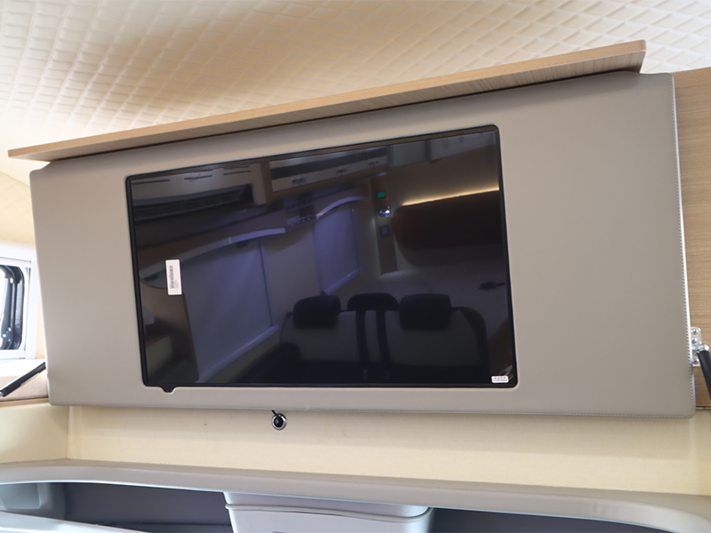 床的底部内嵌了一台32寸电视机,驻车后向上翻起,就可以欣赏喜爱的电影了。