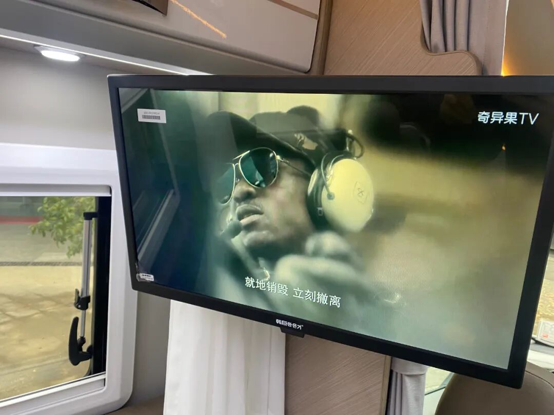 双人沙发对侧还配有韩巨24寸网络电视,方便乘坐休息时观影,提升生活品质,另可选华为投影。