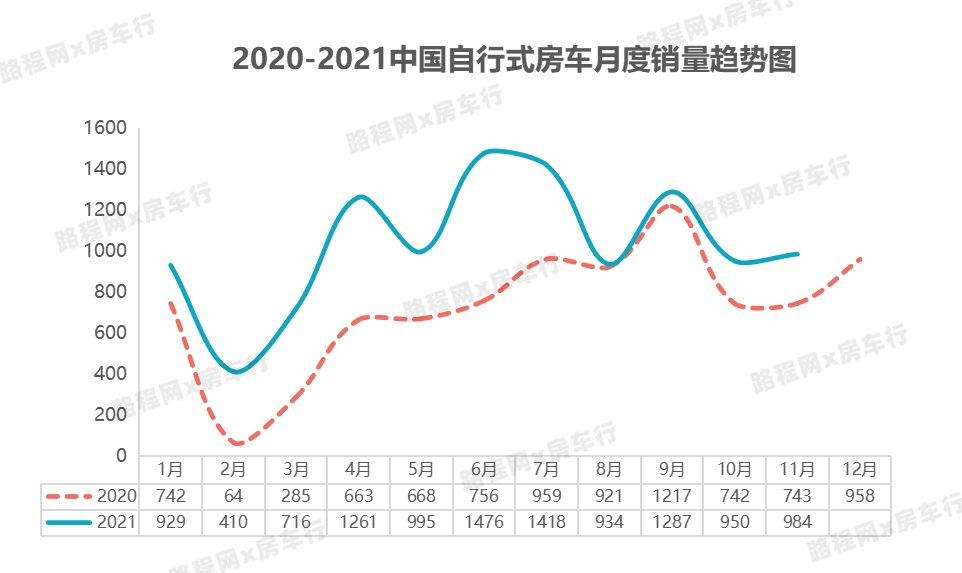 虽然目前12月的数据尚未出炉,但通过2020-2021中国自行式房车月度销量对比图中除去销量接近的8月、9月以外,其余月份均保持较大幅度的增长趋势来看,12月的销量应该也不会差太多,突破千辆的可能性还是很大的。