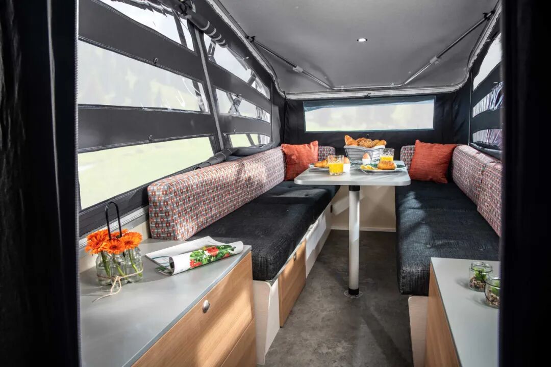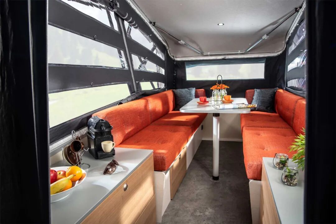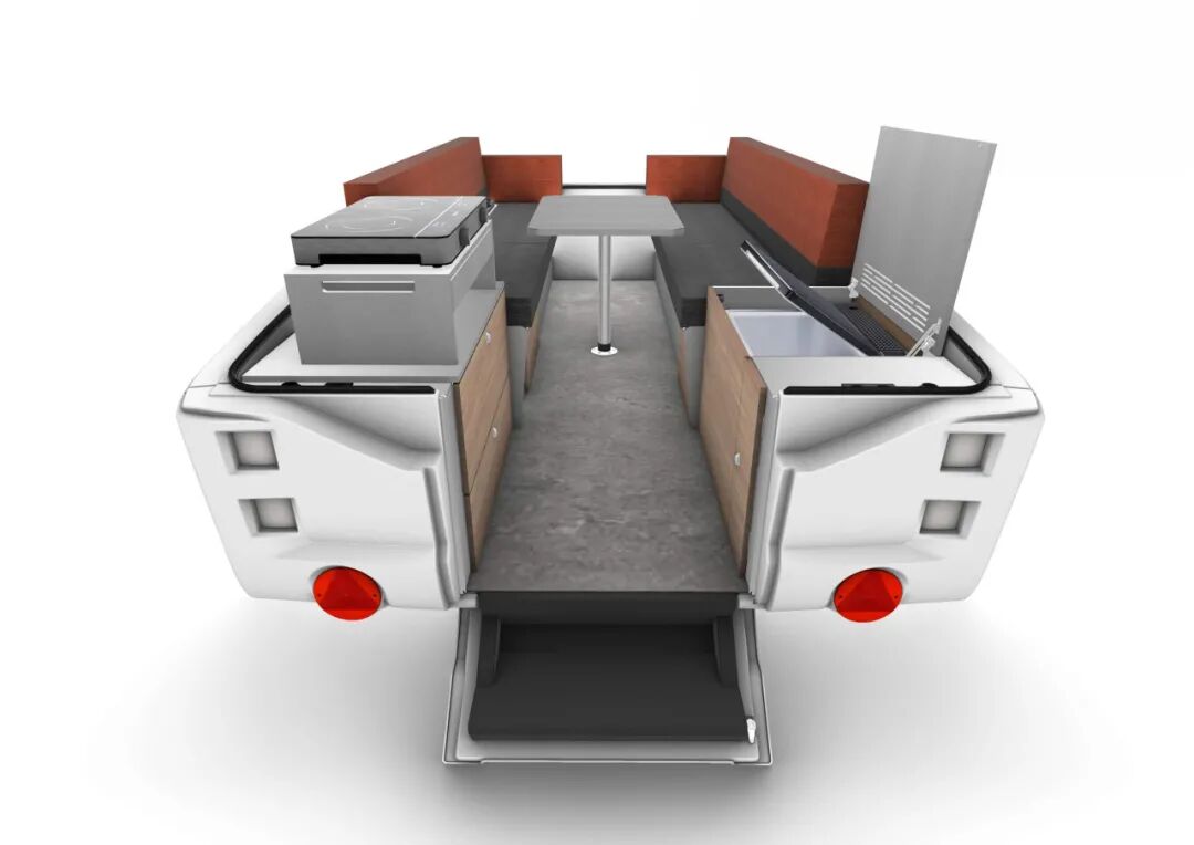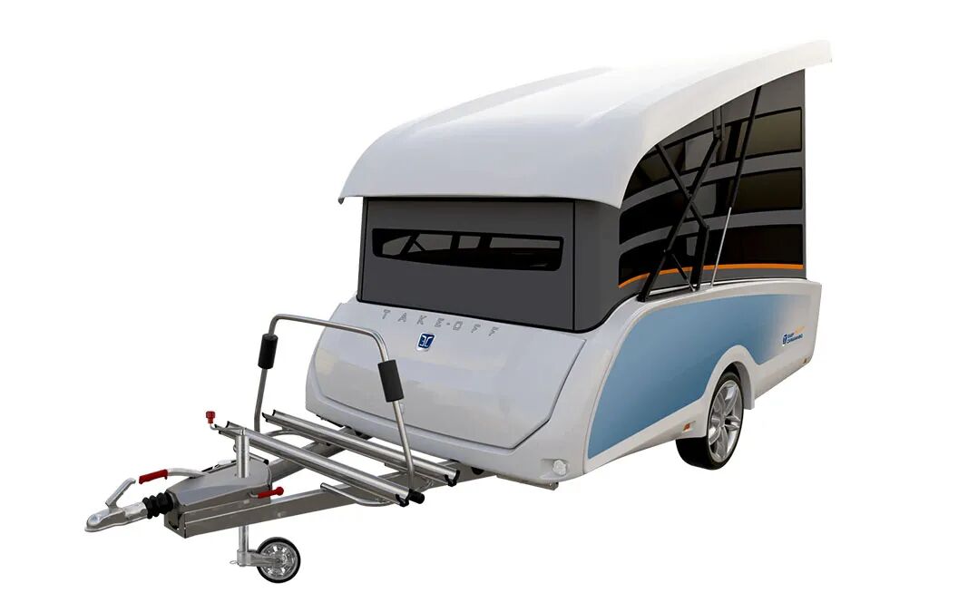 荷兰公司生产的Takeoff Active折叠拖挂房车,车身体积小,质量轻,旅行拖曳非常方便。在使用功能方面,这款小体积房车的功能却非常丰富,遮阳棚、燃气灶、逆变器等设施一应俱全,满足旅行生活所需。