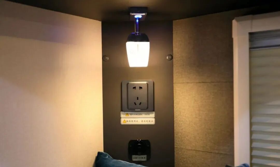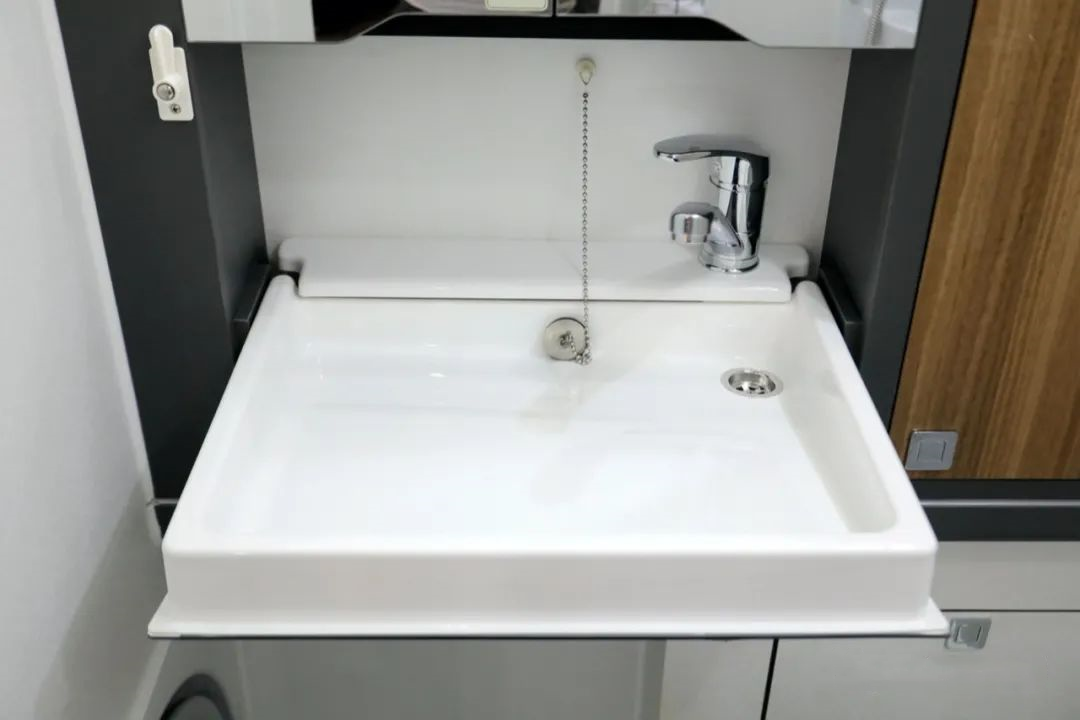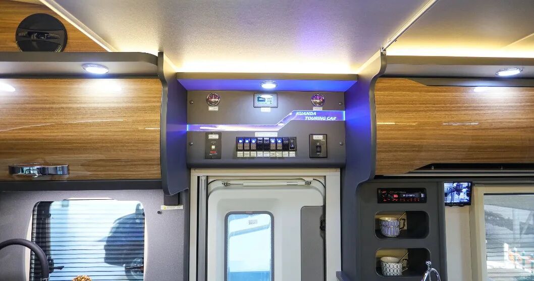 橱柜右侧乘车门的上方是整车的水电控制系统,可实时显示并调控车内水电系统。