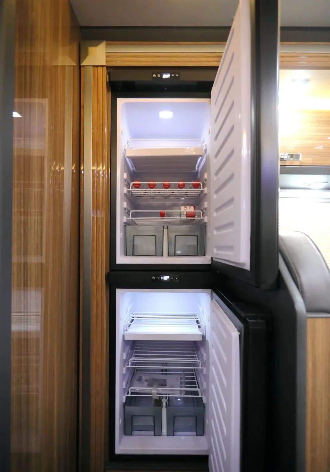 12V 152L英得尔可调节冷冻冰箱位于会客区后方,与厨房区配合使用。