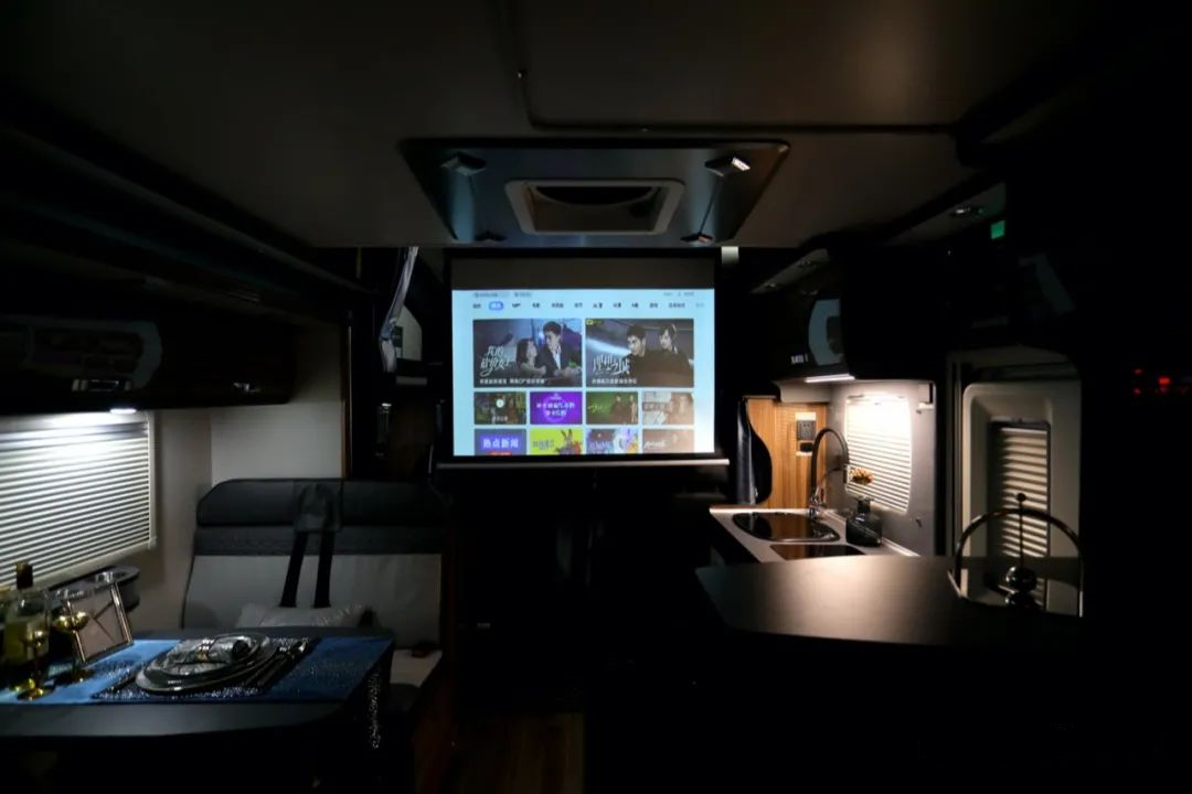 夜幕时分,还可以打开会客区的投影设备,体验家庭影院级享受。