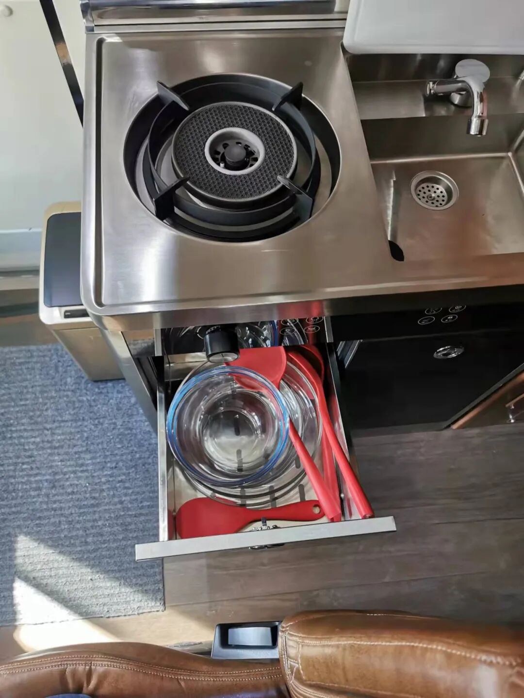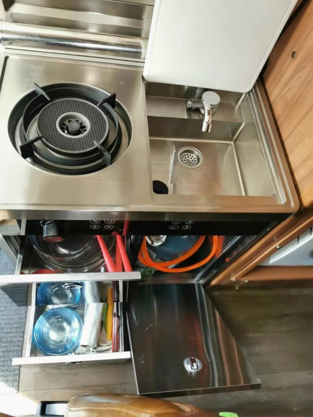 另外需要注意的是,虽然这款集成灶是独立机构,但想要在房车内使用,还是需要由房车厂家的专业工作人员进行选位、安装、固定,自己买回来放在房车使用是不可以的哦,毕竟安全最重要!