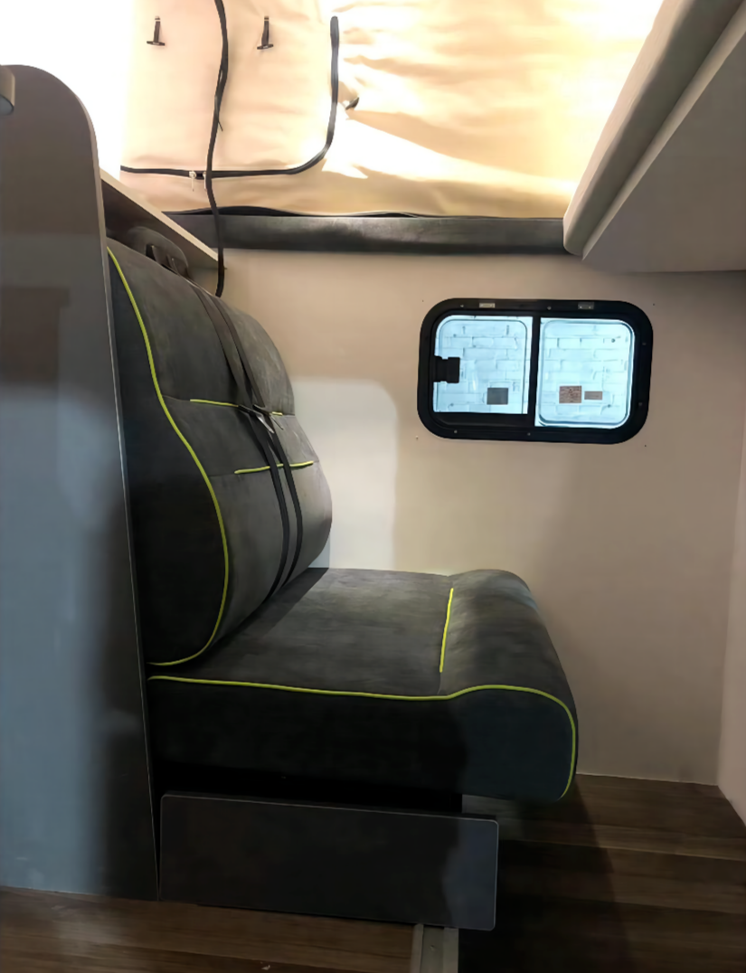 升顶后车内空间还是很充足的,内饰也非常有特色,各种生活功能区都有规划,错落有致的布局,基本满足旅居生活所需;