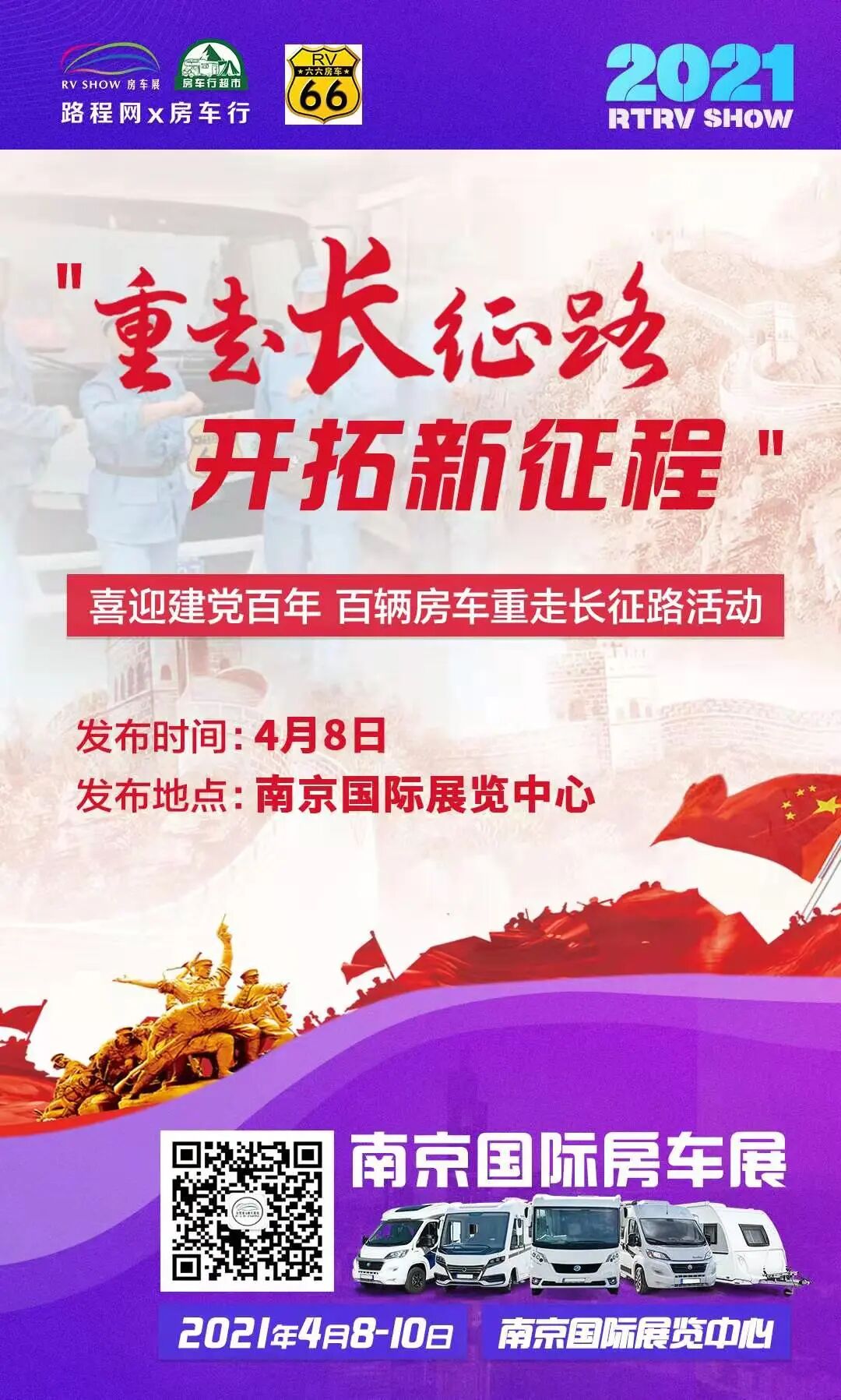 为庆祝中国共产党成立100周年,长三角各地房车俱乐部结合建党百年主题,推出“奋起新征程、重走长征路”---喜迎建党百年百辆房车重走红军路活动。展会期间,路程网x房车行将携手安徽六六房车俱乐部于4月8日在南京国际房车露营与自驾游博览会的现场正式发布“喜迎建党百年,百辆房车重走红军路活动”的相关情况,弘扬长征精神,诚邀各位车友积极参与,共同出发,争做社会主义事业的合格建设者和接班人。