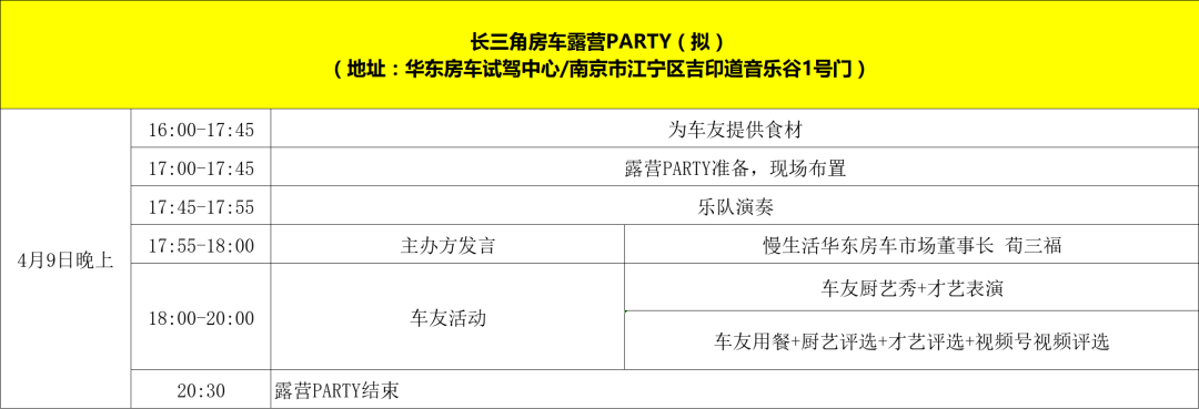 房车展同期将举办展会开幕式、长三角房车露营PARTY、房车达人分享交流会、视频号抢现金大奖、百辆房车重走长征路、答谢晚宴、房车新产品发布、租赁型房车逆向采购会、旅游联合/战略合作推介会等活动将同期举办,让你了解房车文化、走进房车生活、享受房车旅行!
