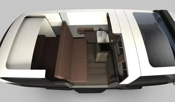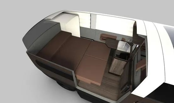 顶部的拓展和尾部的模块都可以加装,驻车后把双拓展打开后,座椅可以拼成一张大床,顶部空间也十分充裕。通过这样的变形后就可以车里休息了。