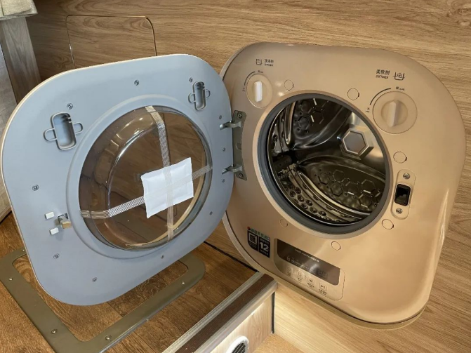 床的下方内嵌了一台2.5kg大宇洗衣机,方便解决户外洗衣问题。