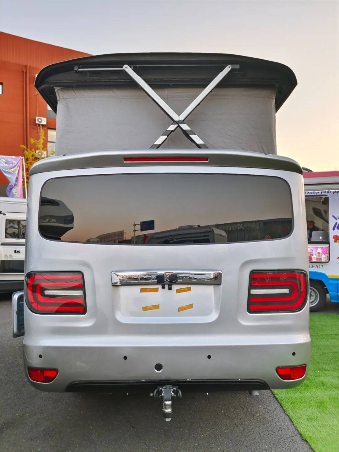 这款房车总质量2.6吨,车身长5480mm,宽2050mm,高度仅有2180mm,无惧限高,可进地库,畅通无阻;车身采用全铝冲压工艺,在安全性方面表现出色;车的顶部带有多连杆电动升降顶系统,方便打开升顶结构,整车荷载5人,可上京牌(蓝牌),C照可驾驶。