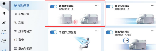 FCW前向碰撞预警的适用车速区间为8-80km/h;当检测到房车前方存在碰撞风险时,FCW前向碰撞预警会提醒驾驶者及时控制车辆刹车,避免因反应不及时而引发碰撞的风险。