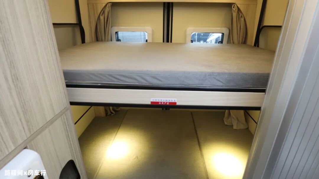 尾部上下铺空间足够宽阔,可满足多人睡眠的需求;床垫选用5cm高弹性床垫,睡眠舒适度得到较大提高;内部设有阅读灯方便夜晚使用,同时设有隐私帘保护个人私密空间不被打扰;