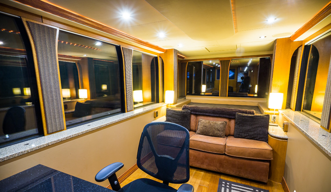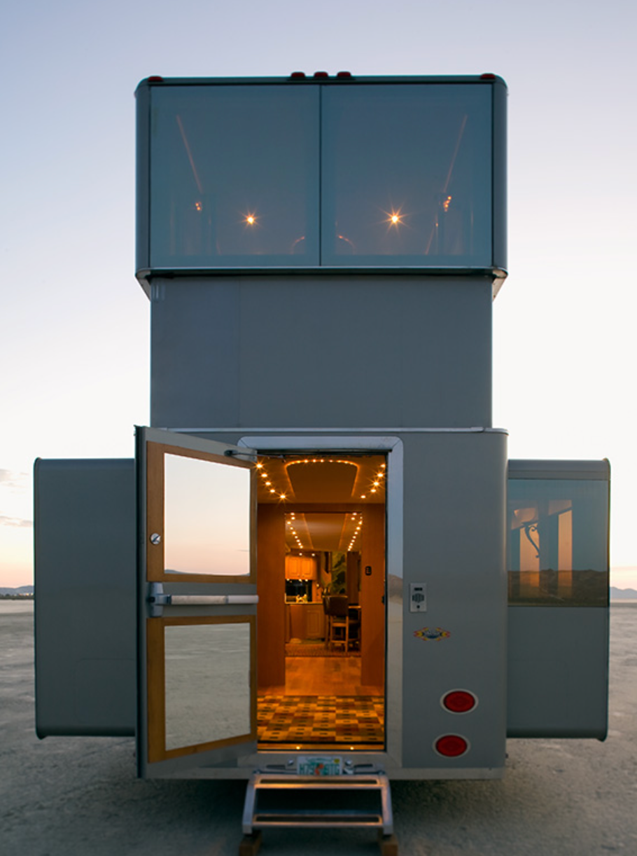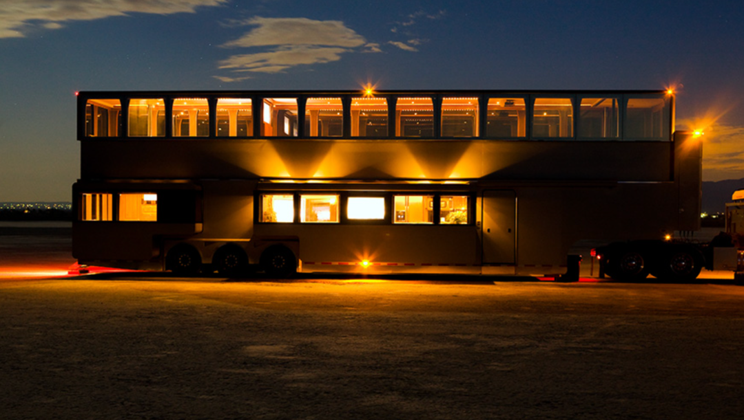 好莱坞明星威尔·史密斯(美国男演员,代表作《拳王阿里》、《震荡效应》、《当幸福来敲门》)向Anderson Mobile Estate房车公司定制了一款超级房车,称之为Studio Mobile Estate。该房车全车身搭载22个车轮、设计有四个拓展仓。完全展开后室内面积可达111平方米。因为其太大太重,所以配备了22个车轮。入口在车尾,并配有自动折叠的两步楼梯。
