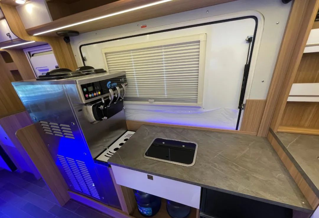 值得一提的是,金龙艾科斯房车旗下还有冰淇淋房车,“醒狮”贝思密H500冰淇淋房车可以随时随地制作冰淇淋和各种饮品,满足边旅行边赚钱的梦想。