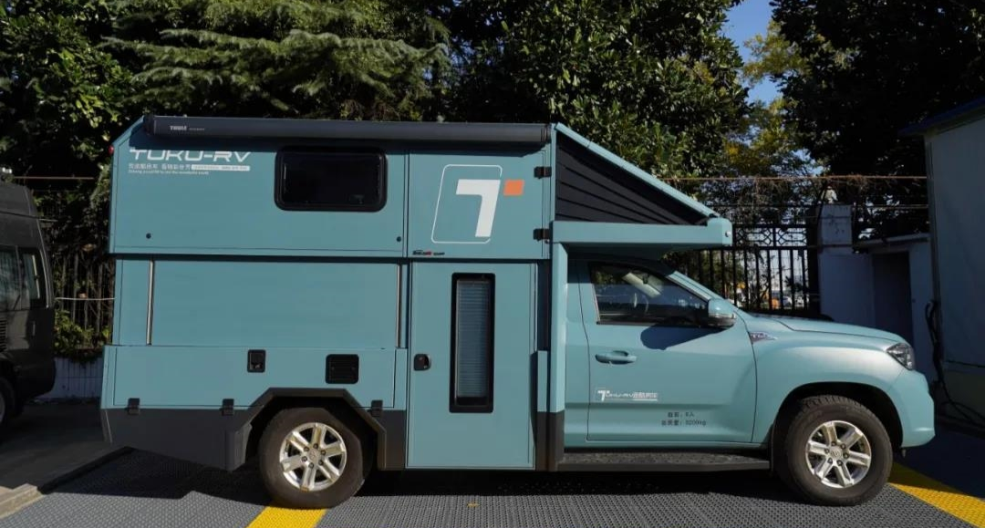 为了更加符合年轻用户的喜好,途酷神行太保系列房车有多种底盘、多样化内饰布局可供大家选择,目前正式发布的豪华版便是采用了上汽大通T70皮卡底盘所打造,车身外尺寸为5785x2090x2000mm,核载4-6人,蓝牌C照;动力搭载2.0T柴油发动机,匹配6AT变速箱,而前双叉悬臂螺旋独立悬架+后全渐变式钢板弹簧非独立悬架、四驱+差速锁的组合让这款车具备全地形用车的能力,适用场景广泛。