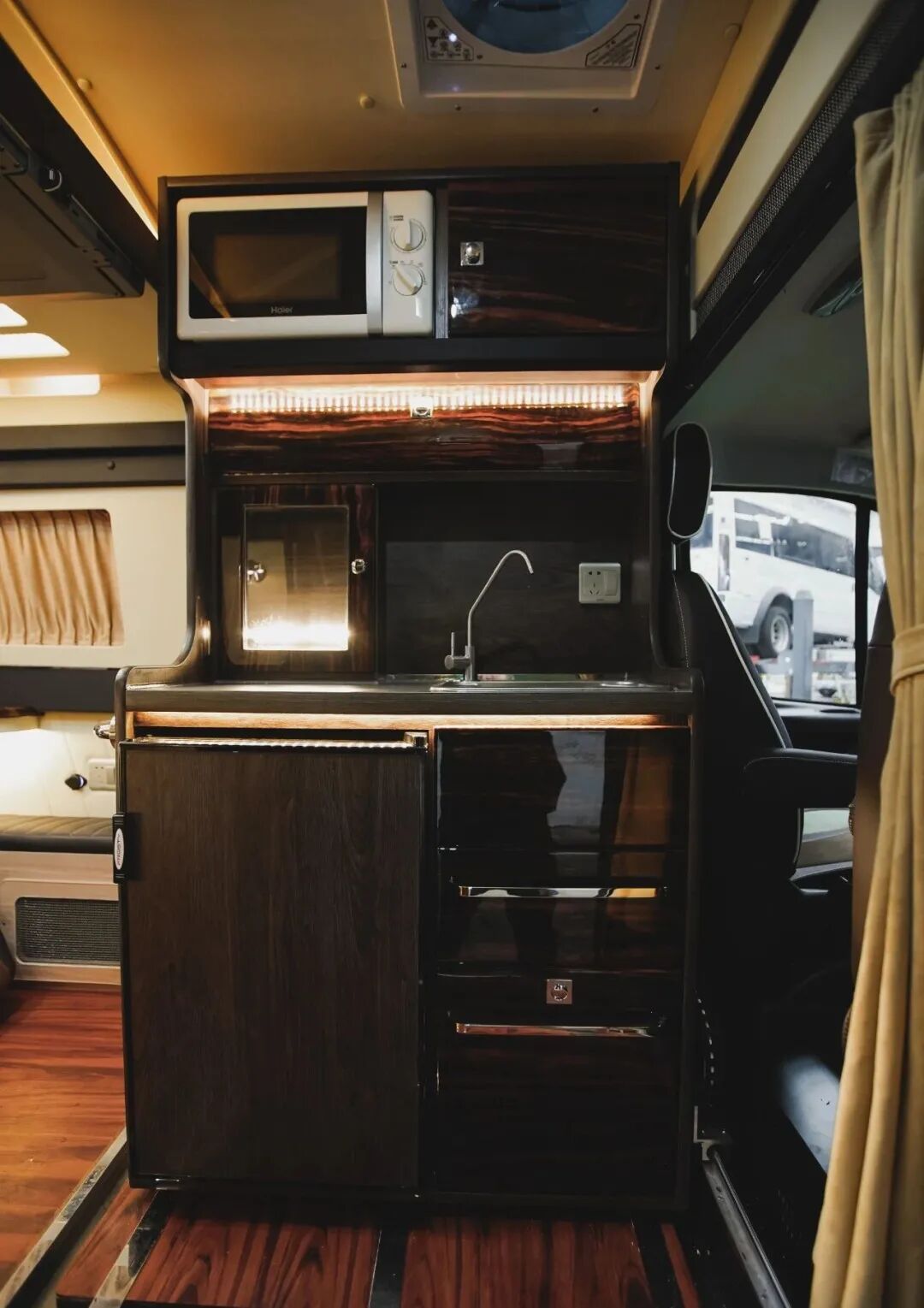 ● 水电方面,配备了140L清水箱、40L灰水箱、3000W充电逆变智能交换机、12V+48V双电源系统(8000Wh)等;