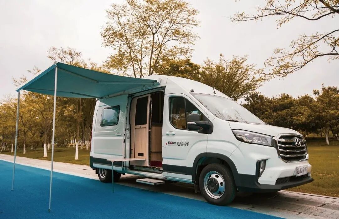 ● 车尾采用上掀门设计,在不打开遮阳棚的情况下,可以增加驻车时的活动范围;顶部设有升顶机构,打开后可增加车内空间;