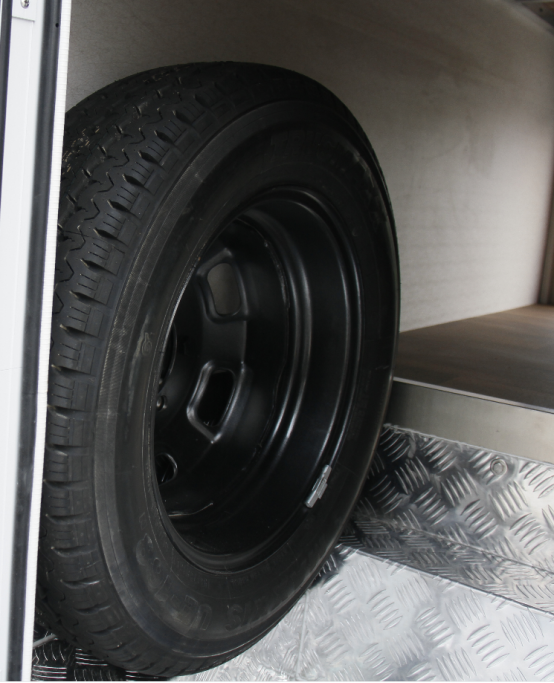 车尾储物舱采用一体式贯通设计,有非常大的储存空间,同时也方便存取物品;储存舱内还可以放置车用备胎,可防止外出旅行时车辆因轮胎破损而抛锚。